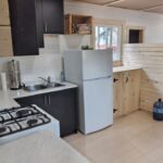 Full size kitchen including brand new Frigidare fridge, Unique propane cooking stove.